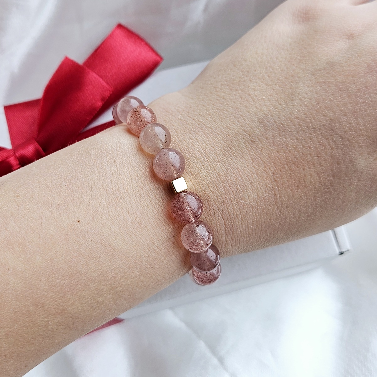 • Akmuo: natūralus braškių kvarcas