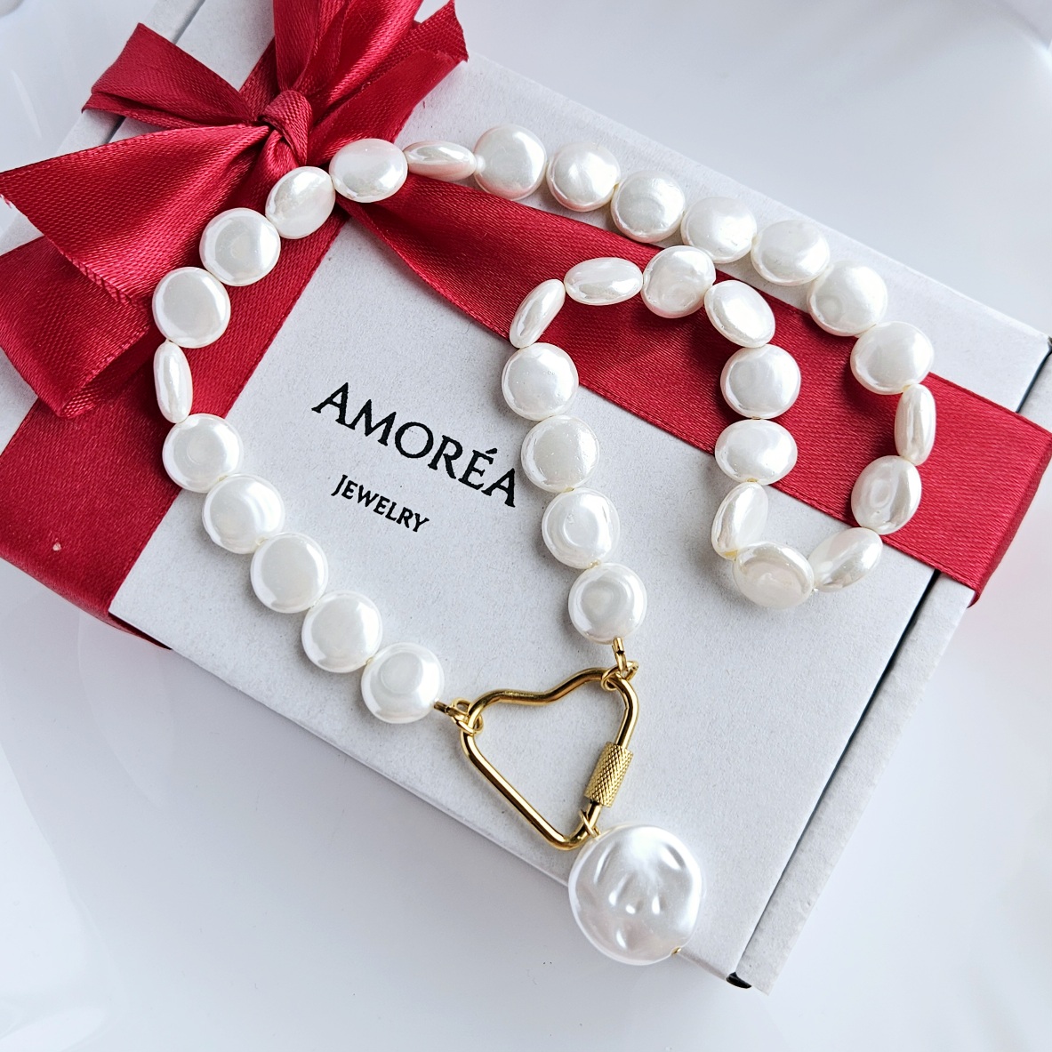 Perlų masės karoliai – klasikinis, švelniai blizgantis perlinis efektas, suteikiantis elegancijos ir švaraus įvaizdžio.