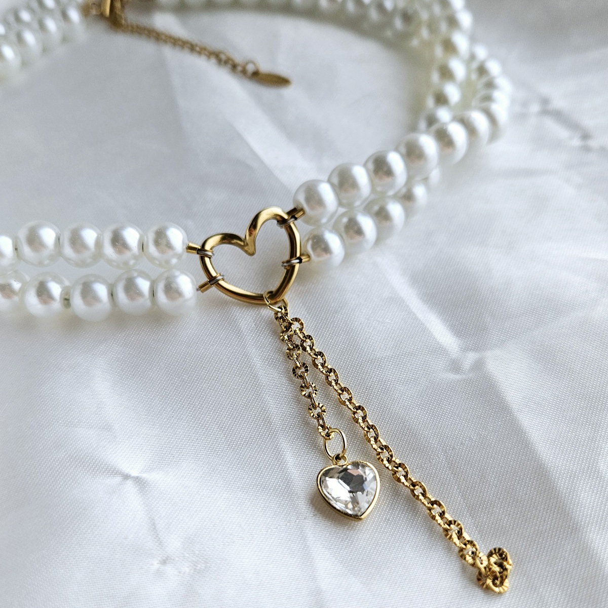 Nerūdijančio plieno detalės – širdelės formos jungtis, užsegimas ir prailginimo grandinėlė pagaminti iš nerūdijančio plieno. Tai ilgaamžė, patikima medžiaga, tinkama kasdieniam nešiojimui, atspari dėvėjimuisi.