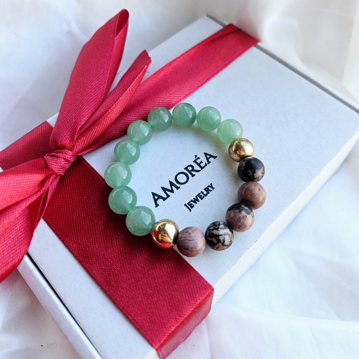 🎁 Kiekviena apyrankė supakuojama į dovaninę Amoréa dėžutę ir papildoma kortele su akmens reikšmės paaiškinimu – tinka dovanoti iškart 🤍